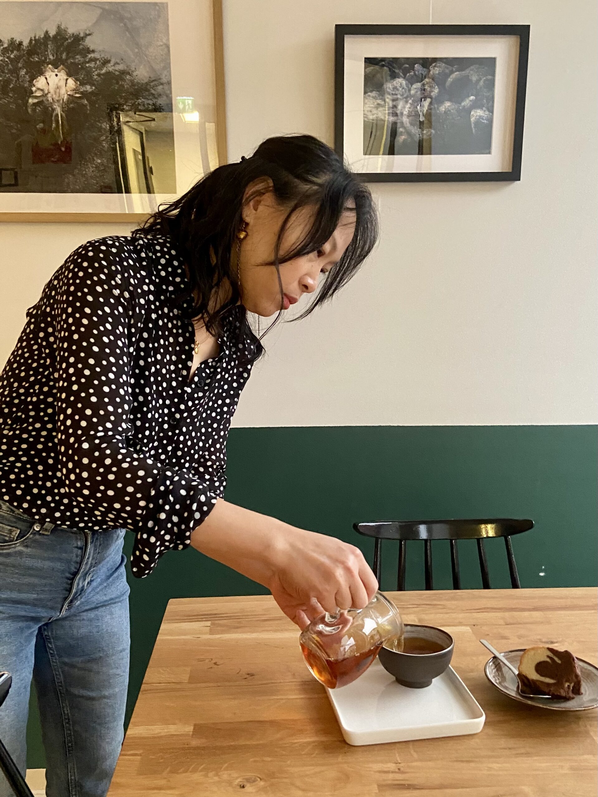 Fang Hu kattaa kahvilan pöydälle palan tiikerikakkua. Kello on vasta kahdeksan aamulla, eikä Cafe Mossin espressokone ole vielä ehtinyt tarpeeksi lämmetä, mutta se ei haittaa. Tiikerikakun kanssa sopii myös inkiväärillä maustettu musta tee.