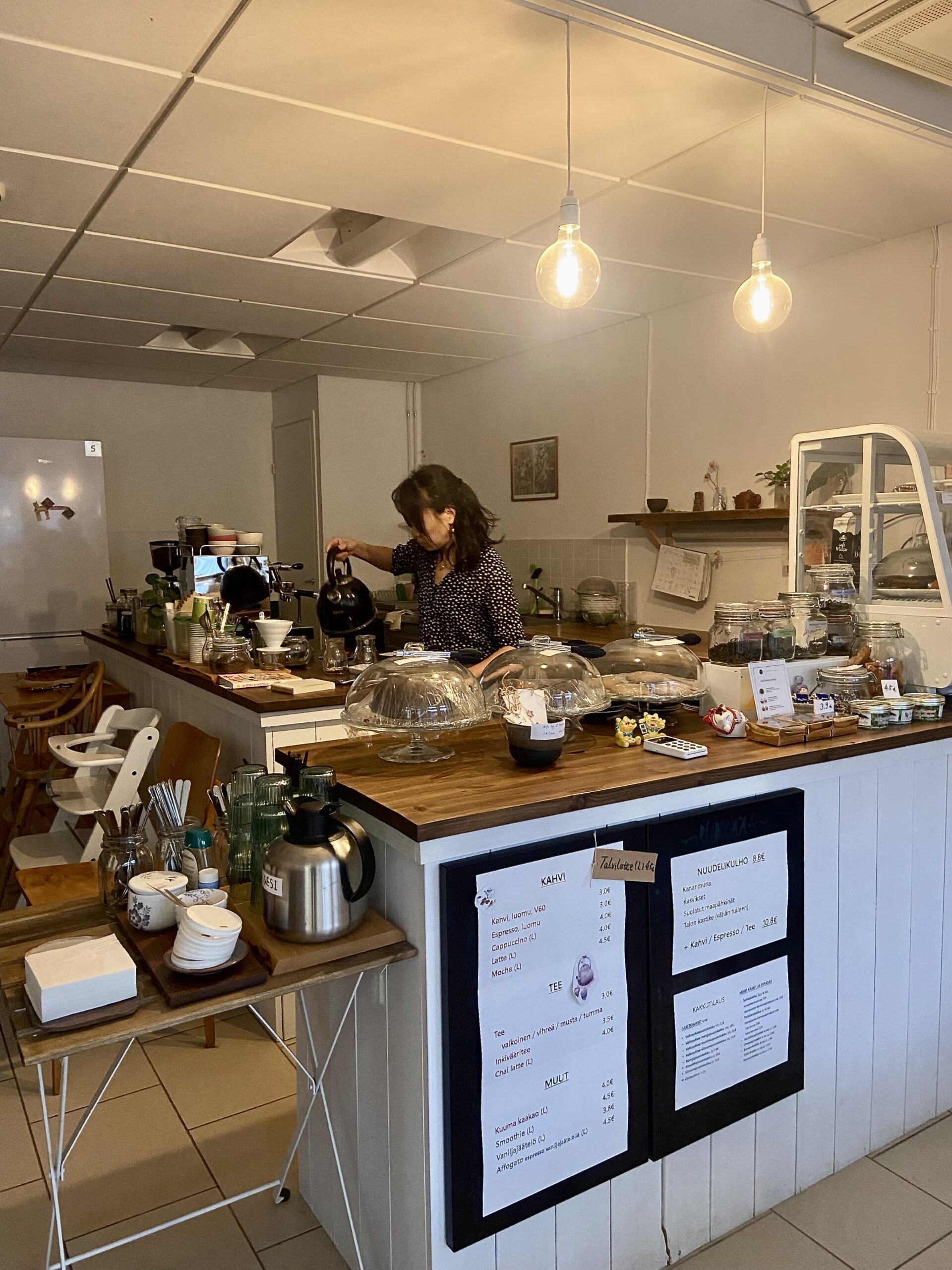 Siinä oli kuitenkin yksi iso mutta, joka liittyi tarjoiluihin. Hän oppi kahvinvalmistuksen baristakurssilla, ja teen valmistus oli hänelle jo entuudestaan tuttua. Mutta entä kakut ja piirakat?