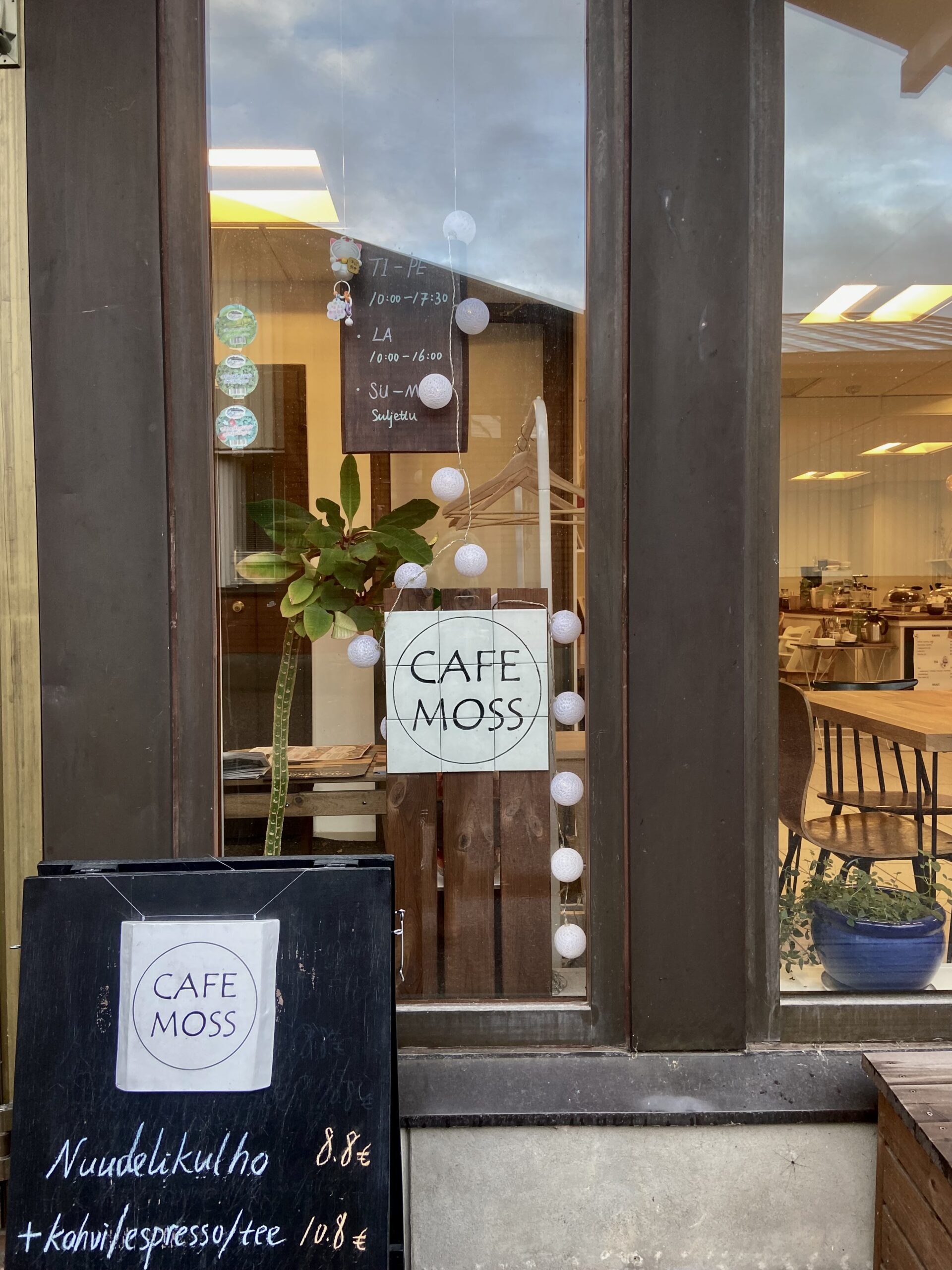 Cafe Mossin Instagram-profiilissa lukee, että se on paikka, missä voi tavata muita mutta myös itsensä. Vaikka tutustuminen toisiin on Fangin mielestä pienellä paikkakunnalla helpompaa kuin suurkaupungissa, siihenkin tarvitaan kohtaamispaikkoja.